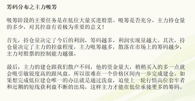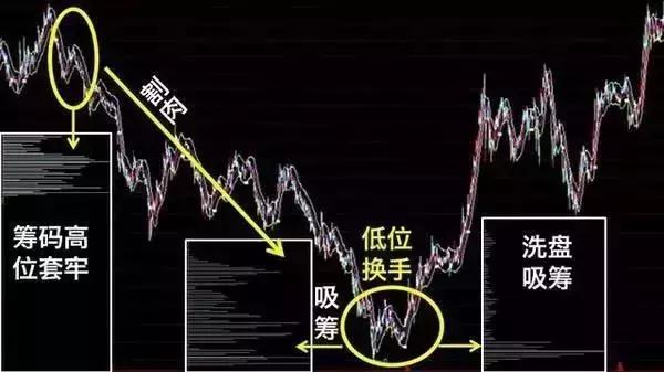 也就是股价由底部到拉升再到顶部的过程。股票形成底部的初期,大部分筹码应该被散户持有。当成交量放大主力开始吸筹,其区域成交量的总和要大于主力收集到的筹码,因为这里还含有散户的行为。当股价多次拉升和休整以后,必然导致筹码的沉淀和筹码的移动。这样就可以区分出筹码的归属。